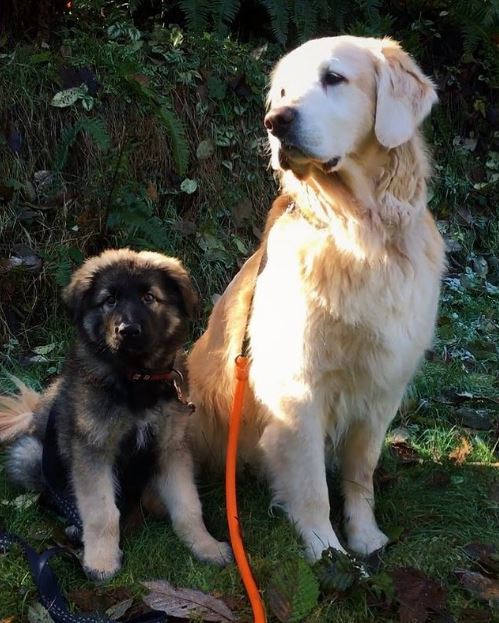 When we brought Rocky home at 8 weeks old, he joined us with our 10-year-old golden retriever, Sammy.